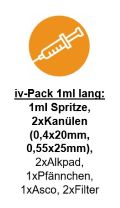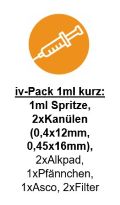 Das iv-Pack 1 ml kurz richtet sich an intravenös konsumierende und enthält: |